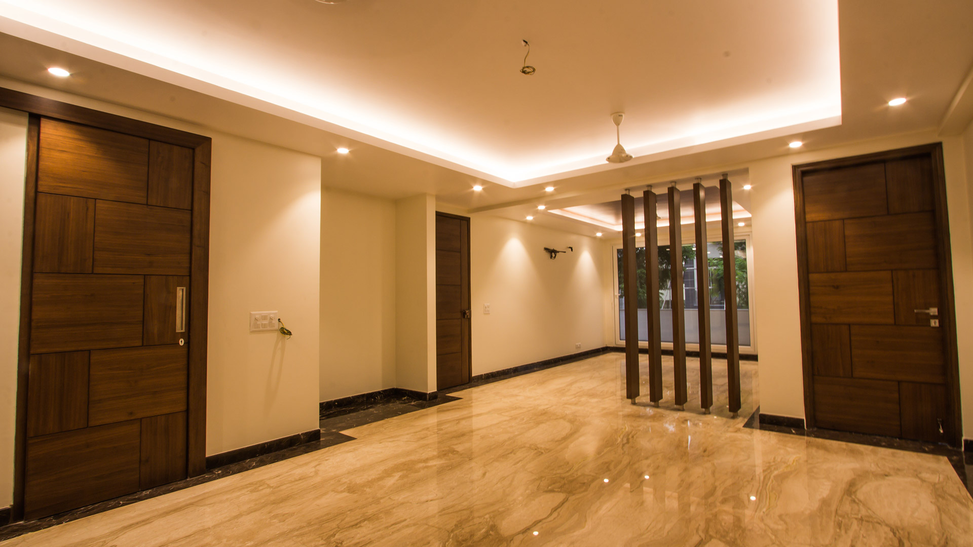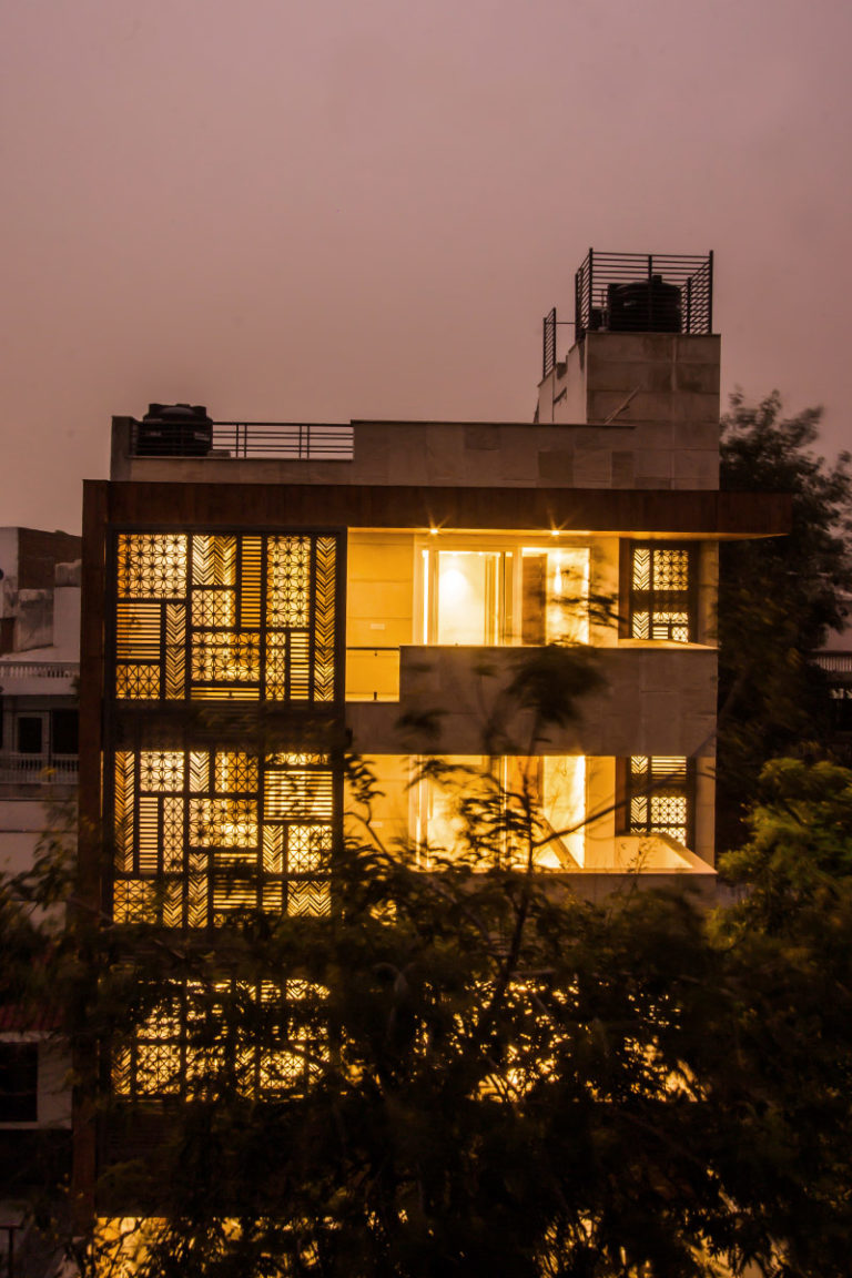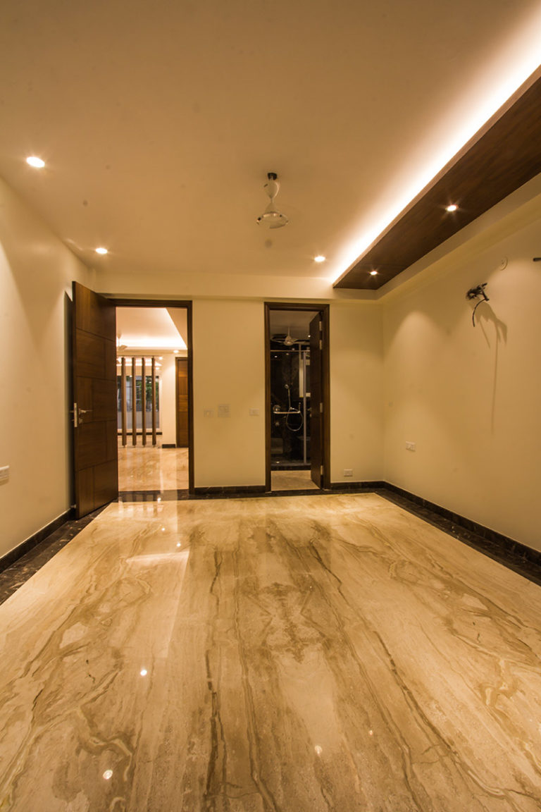 Following the principles of Vaastu, the design serves the user by curating functional and user-conscious spaces. The spatial alignment is rendered according to the orientation of the building bestowing the features of Vaastu Shastra, as defined by the client brief. The interiors of the building are devised to radiate a warm glow that soothes the living experience as a whole, and the material palette adds a luxe experience to the minimalistic spatial composition.