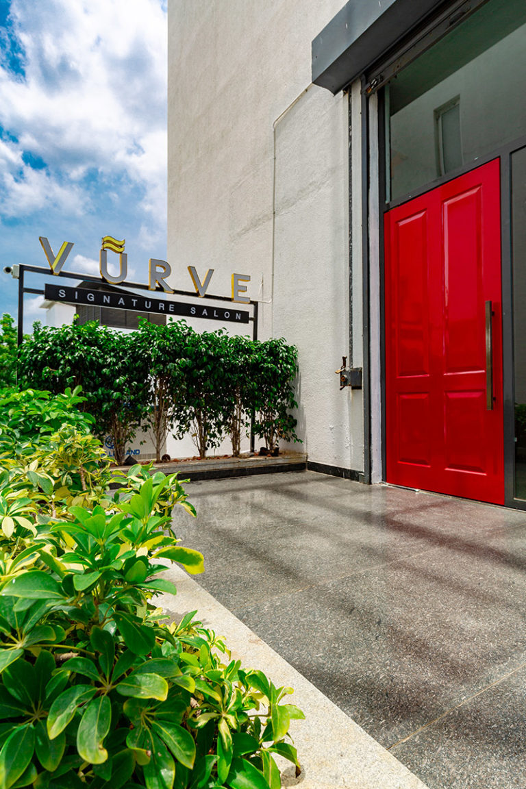 An attempt has been made to create a holistic experience for the users, through intricately planned design interventions. Distinctive forms and materials have been employed to disrupt monotonous and traditional practices. The integration of efficient configuration and exquisite interior aesthetics can be seen across all the designs.The Red door is a signature facet used in all Vurve salons; the iconic "Red" door has become a symbol of Vurve's quirky nature and is an element of curiosity for the spectator.