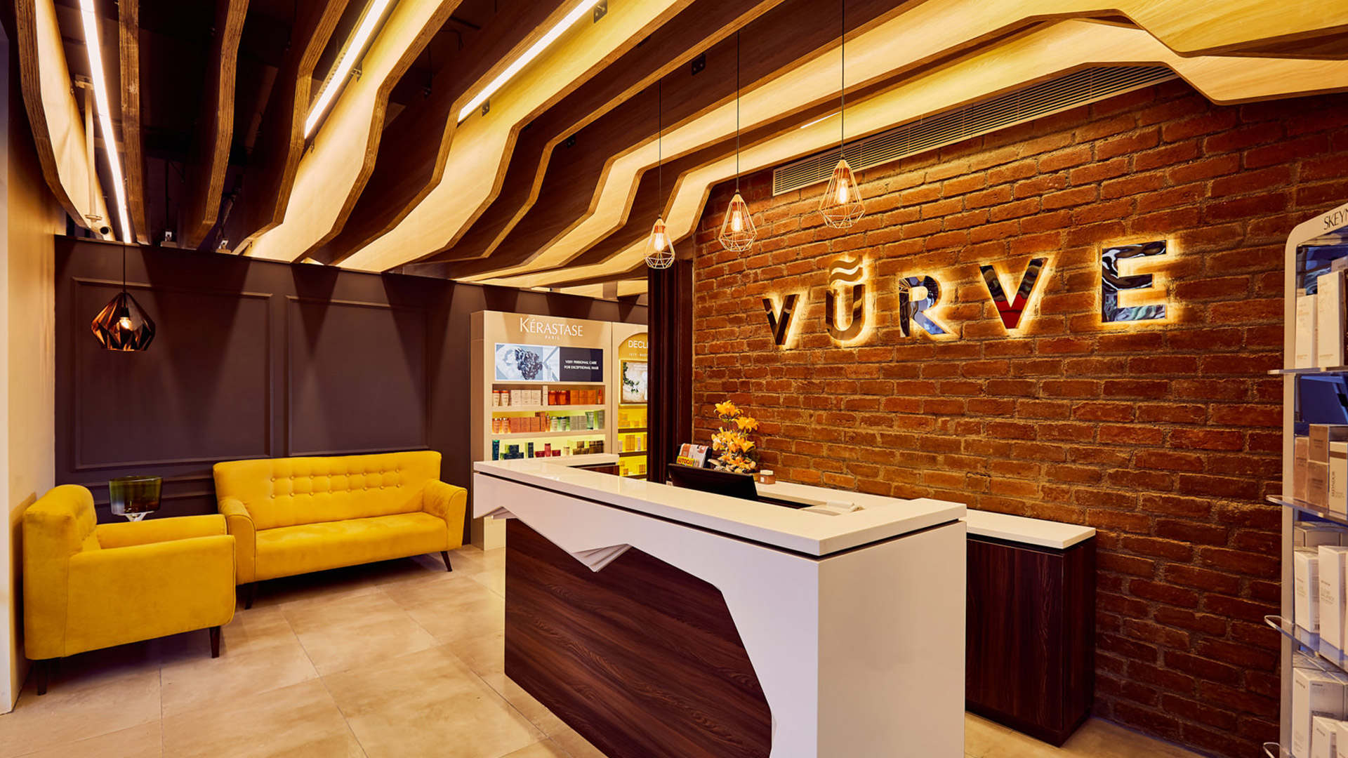 With a design vocabulary that embodies the warm and vibrant persona of the owner, the Vurve series is curated as an epitome of salon revolution in South India. The multi-faceted design strategy of the salon series has won accolades for its versatility and